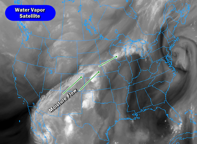 Here you see the band of clouds and moist air I have marked up for you coming in from Hurricane Newton in Mexico, working northeast into the US and across the central Plains, then into the Midwest. I expect mid 80's tomorrow with partly sunny skies early, then clouds increasing as the day progresses After the showers and such get in and through the area, noticeably cooler with readings in the 70's for the balance of the week.